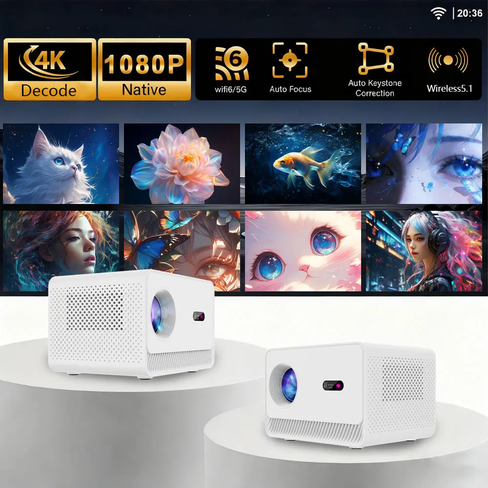 Mini Projecteur M10 4K Ultra HD – Android 13 | Wi-Fi 6 Double Bande | Projecteur Intelligent Home Cinéma
