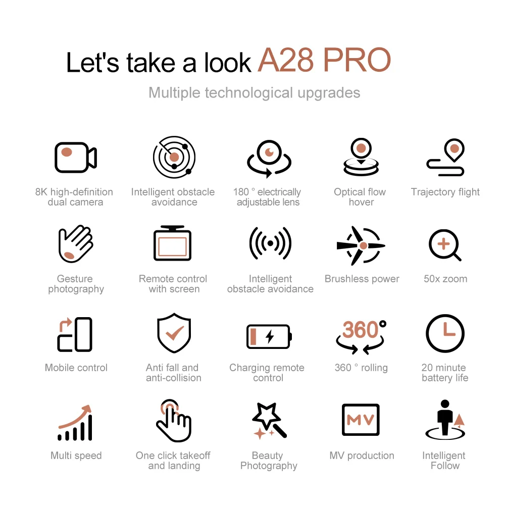 Nouveau Drone A28 PRO 8K HD, moteur Intelligent sans balais pour éviter les obstacles, avec écran, télécommande, 2.4GHz, jouet RC, cadeau pour adultes
